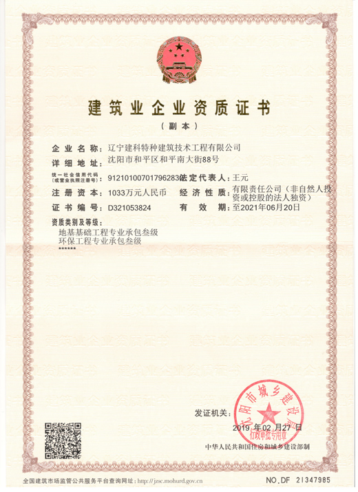 地基基礎(chǔ)工程和環(huán)保工程專(zhuān)業(yè)承包叁級(jí)