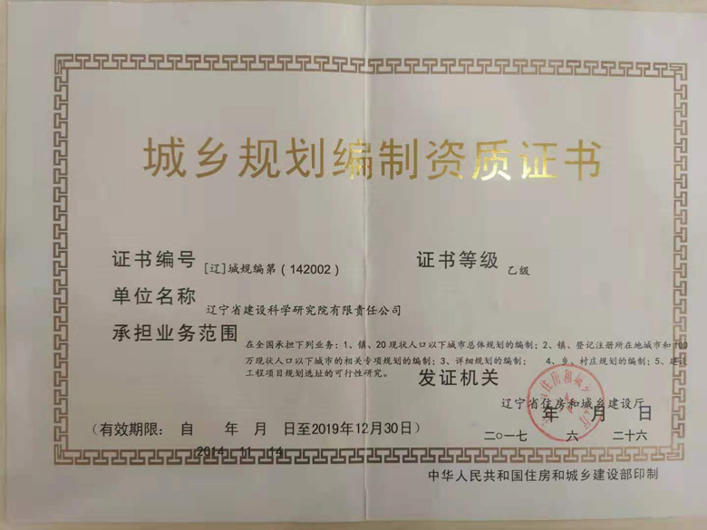 城鄉(xiāng)規(guī)劃編制資質(zhì)證書(shū)